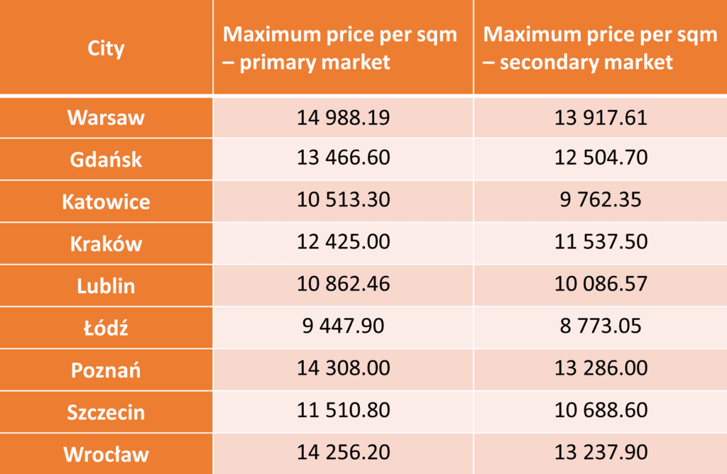 These are the price limits in the third quarter of 2025 for the biggest cities in Poland: